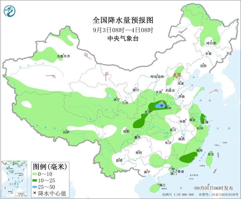 齐邦落火量预告图(9月3日08时-4日08时)